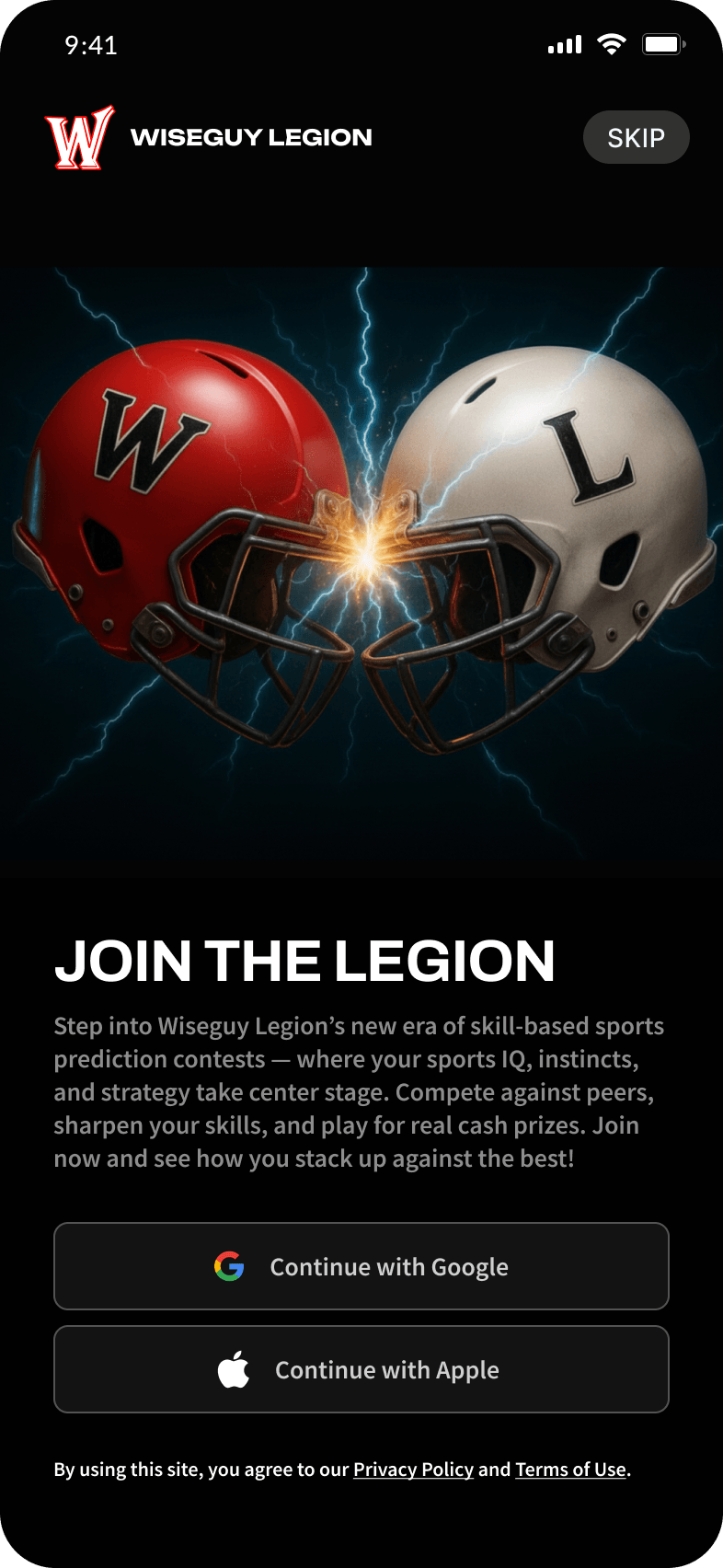 Step into Wiseguy Legion’s new era of skill-based sports prediction contests — where your sports IQ, instincts, and strategy take center stage. Compete against peers, sharpen your skills, and play for real cash prizes. Join now and see how you stack up against the best!
